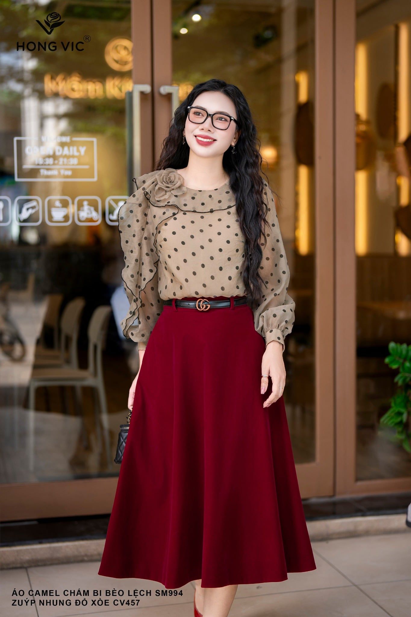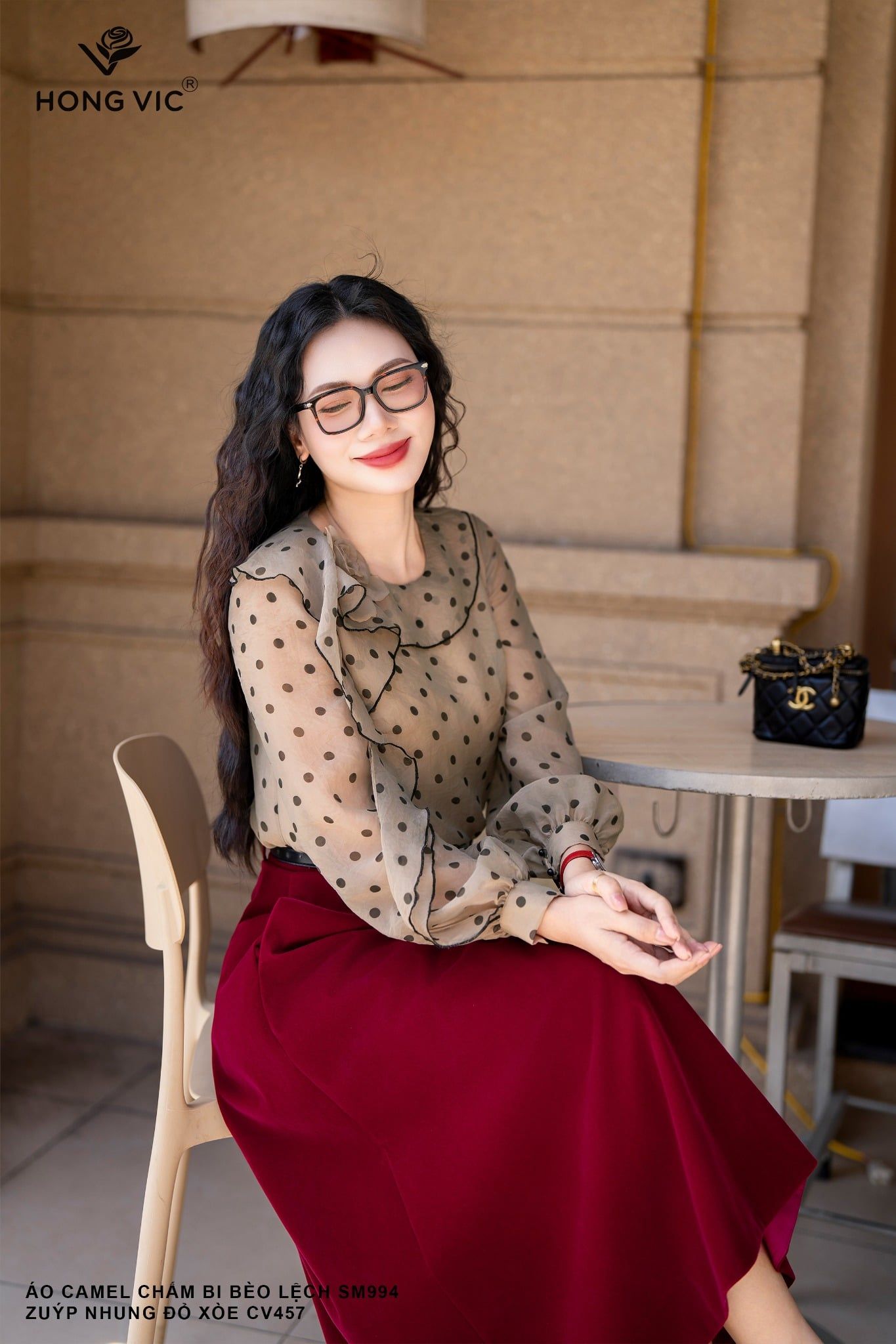 Áo camel chấm bi bèo lệch SM994